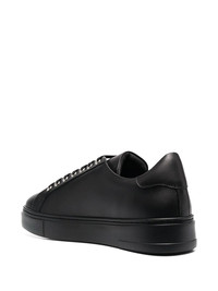 PP1978 low-top sneakers black leather round toe padded ankle logo plaque front lace-up fastening flat rubber sole Made in Italy Composition Outer: Calf Leather 100% Lining: Leather 100%, Sheepskin 100% Sole: Synthetic Rubber 100% SIZE & FIT Measurement HEEL 1.37 in(3.5 cm) Sole height 1.18 in(3 cm)