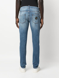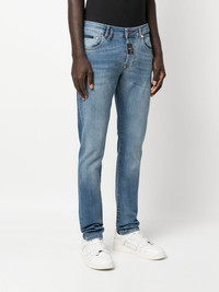 Premium-Hexagon straight-fit jeans blue cotton blend stretch-design belt loops button fly fastening classic five pockets logo patch to the rear straight leg Made in Italy Composition Outer: Calf Leather 100%, Cotton 98%, Spandex/Elastane 2% Lining: Polyester 65%, Cotton 35% SIZE & FIT Model measurements Height 6 ft 2 in(1.87 m) Bust/Chest 36.41 in(92.5 cm) Hips 37 in(94 cm) Waist 29.52 in(75 cm) FittingInformation This piece fits true to size. We recommend you get your regular size Cut for a slim fit Made with a mid-weight stretch fabric Washing instructions Machine Wash