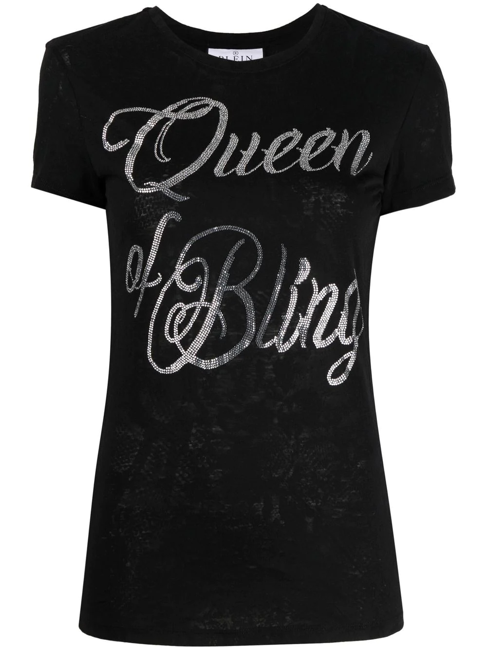Queen Of Bling cotton T-shirt black/silver cotton jersey knit embroidered design crystal embellishment logo patch to the rear round neck short sleeves straight hem Imported Composition Cotton 100% SIZE & FIT Model measurements Height 5 ft 9 in(1.75 m) Bust/Chest 32.67 in(83 cm) Hips 36.22 in(92 cm) Waist 24.8 in(63 cm) FittingInformation This piece fits true to size. We recommend you get your regular size Cut for a close fit Made with a mid-weight fabric Washing instructions Hand Wash