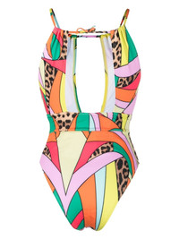 rainbow patchwork-print monokini brown/multicolour stretch-design all-over graphic print cut-out detailing spaghetti straps Be mindful to try on swimwear over your own garments. Made in Italy Composition Polyester 88%, Elastane 12%