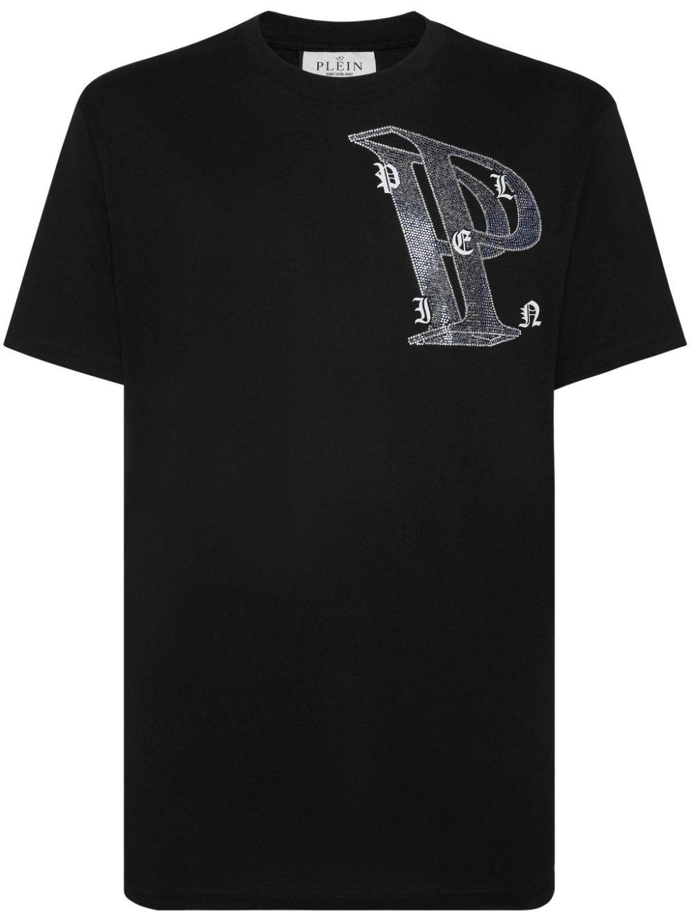 rhinestone-embellished cotton T-shirt Highlights - Black - Cotton - Crew neck - Short sleeves - Rhinestone embellishment - Logo embellishment - Straight hem Imported Composition Cotton 100%