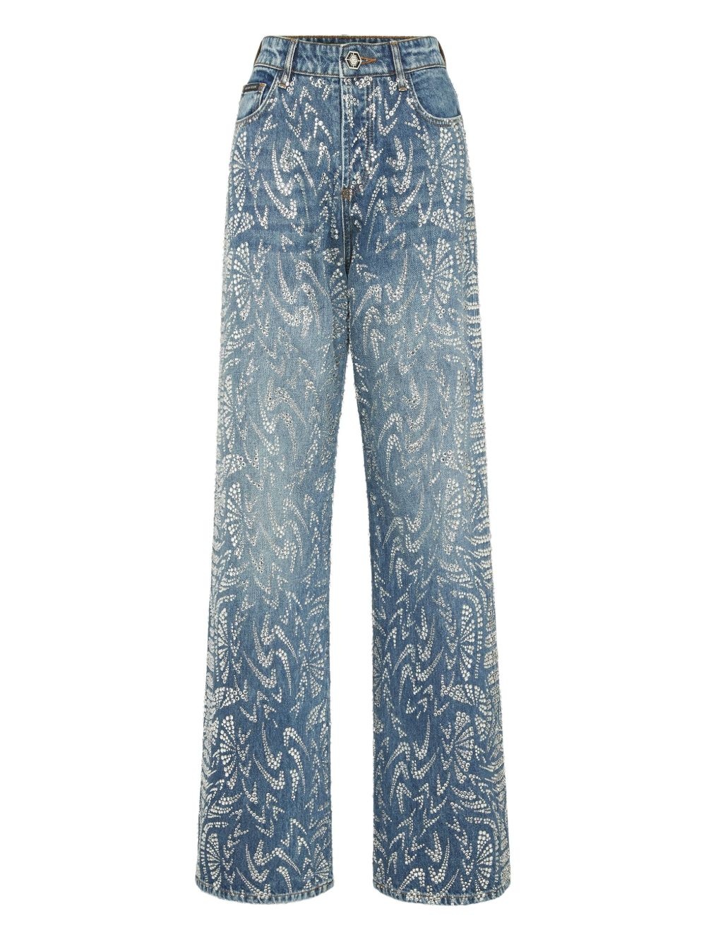 rhinestone-embellished jeans Highlights - Blue - Rhinestone embellishment - High waist - Classic five pockets Imported Composition Fabric 100% Washing instructions Read Manufacturer Guidelines