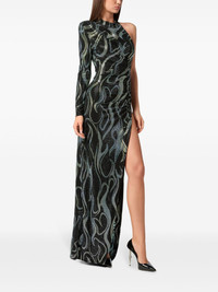 rhinestone-embellished jersey maxi dress Highlights - Black - Concealed rear zip fastening - Mock neck - Single long sleeve - Side slit Imported Composition Glass Fiber 100%, Polyester 95%, Elastane 5%