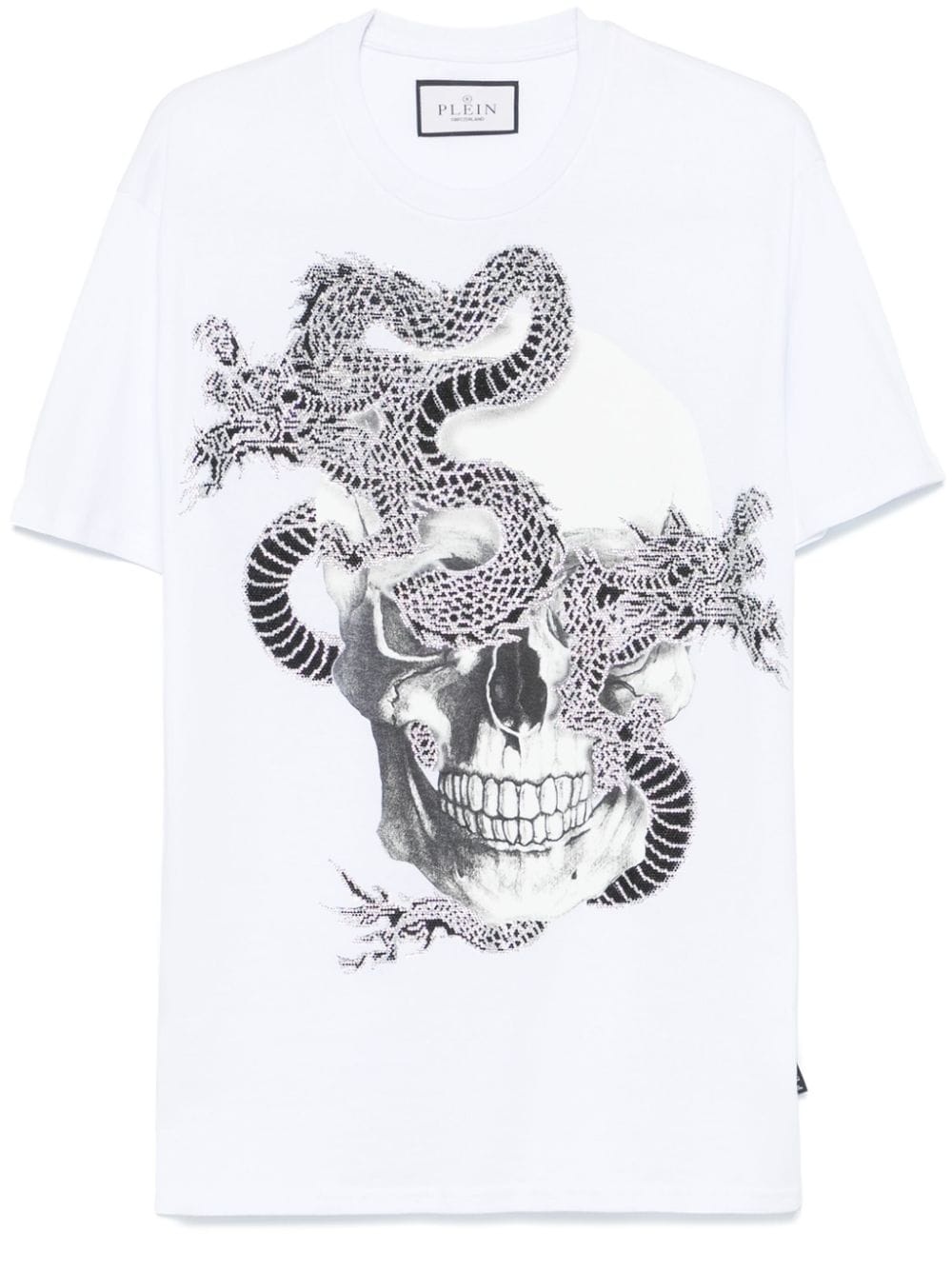 rhinestone-embellished T-shirt Highlights - White - Cotton - Lightweight jersey - Crew neck - Rhinestone embellishment - Skull print to the front - Short sleeves - Logo plaque - Straight hem Imported Composition Cotton 100% SIZE & FIT Model measurements Height 6 ft 2 in(1.88 m) Bust/Chest 35.43 in(90 cm) Hips 36.61 in(93 cm) Waist 27.95 in(71 cm) FittingInformation Designed for a regular fit allowing for a comfortably loose fit throughout the body Made from a midweight non-stretch fabric, this piece offers minimal elasticity when worn