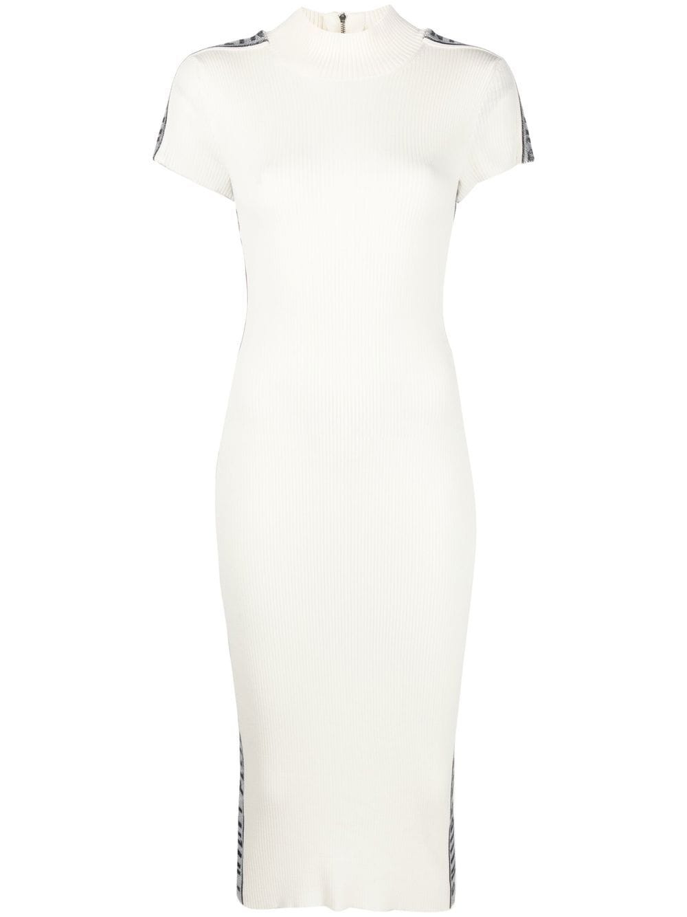 rhinestone-logo ribbed wool midi dress cream white wool ribbed knit high neck short sleeves logo print to the side rhinestone embellishment below-knee length Imported Composition Wool 100% SIZE & FIT Model measurements Height 5 ft 11 in(1.8 m) Bust/Chest 33.07 in(84 cm) Hips 37.4 in(95 cm) Waist 25.19 in(64 cm) FittingInformation This piece fits true to size. We recommend you get your regular size Cut for a close fit Made with a mid-weight fabric Washing instructions Hand Wash