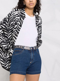 logo-embellished denim shorts Philipp Plein is known for its rhinestone embellishments and these stretch cotton denim shorts are no exception. Case in Point: this pair draws the eye with their sparkling rhinestone logo waistband. Highlights - Blue - Stretch cotton - Rhinestone embellishment - Logo waistband - Classic five pockets Imported Composition Outer: Cotton 92%, Polyester 6%, Spandex/Elastane 2% Lining: Polyester 65%, Cotton 35% SIZE & FIT Model measurements Height 5 ft 10 in(1.77 m) Bust/Chest 32.67 in(83 cm) Hips 35.43 in(90 cm) Waist 23.62 in(60 cm) FittingInformation This piece fits small – you might want to get one size up Cut for a close fit Made with a mid-weight stretch fabric Washing instructions Dry Clean Only