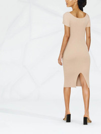 rib-knit midi dress Philipp Plein diverts from their typically bold style in this rib-knit midi dress. Crafted in a neutral beige hue with a simplified sweetheart neckline, details are kept minimal with just a small gold-tone logo plaque at the hem. Made in Italy Composition Viscose 70%, Polyester 30% SIZE & FIT Model measurements Height 6 ft 2 in(1.89 m) Bust/Chest 36.22 in(92 cm) Hips 37.79 in(96 cm) Waist 29.52 in(75 cm) FittingInformation This piece fits true to size. We recommend you get your regular size Cut for a slim fit Made with a mid-weight fabric Washing instructions Hand Wash