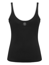 ribbed-knit tank top Highlights - Black - Ribbed knit - Scoop neck - Logo print - Sleeveless Imported Composition Cotton 95%, Spandex/Elastane 5% Washing instructions Read Manufacturer Guidelines
