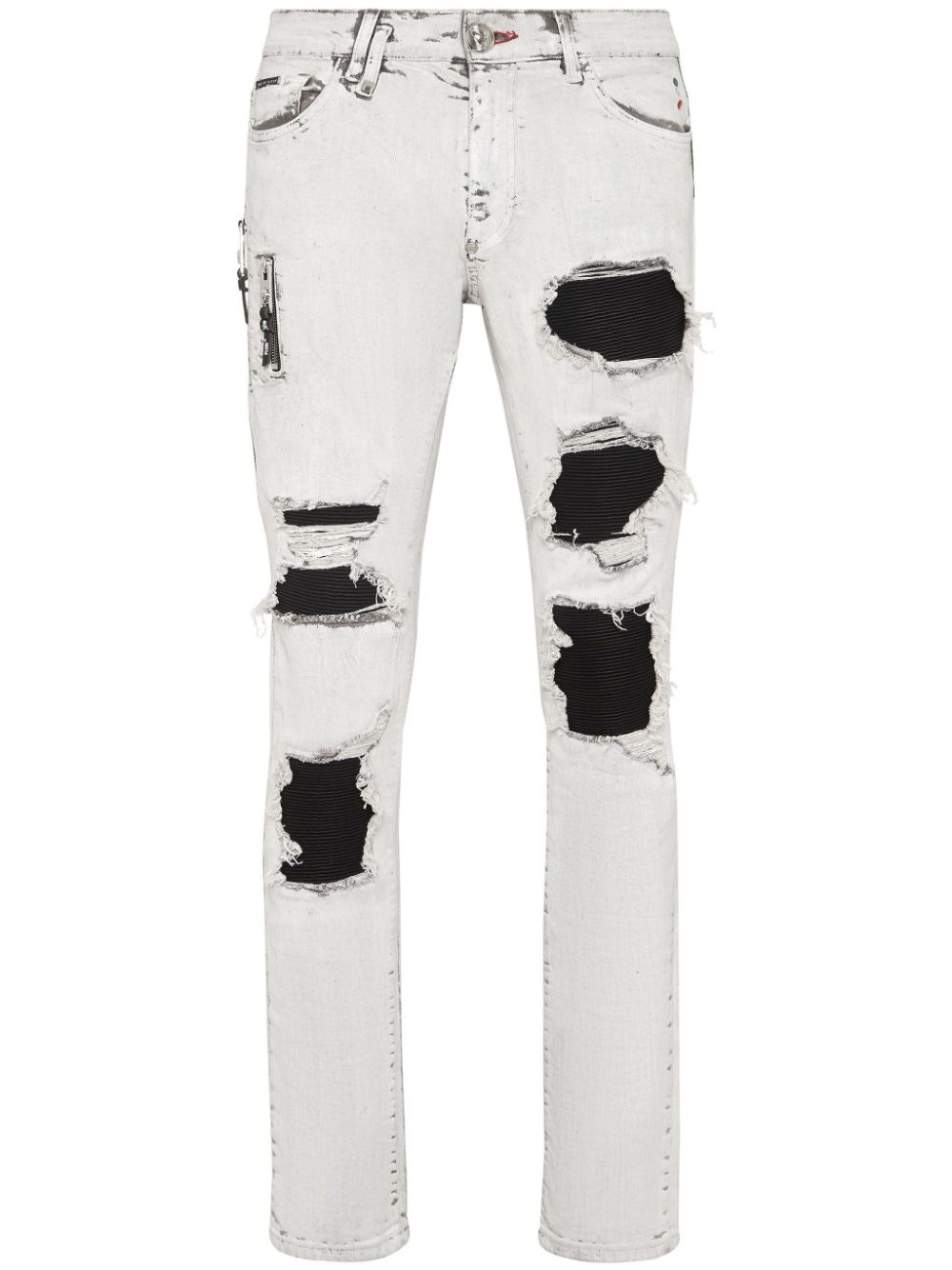 ripped stonewashed skinny jeans Highlights - White/black - Stretch-cotton - Stonewashed - Denim - Ripped detailing - Ribbed detailing - Belt loops - Low-rise - Front button fastening - Classic five pockets - Skinny cut Imported Composition Outer: Polyester 100%, Cotton 98%, Elastane 2% Lining: Polyester 65%, Cotton 35% Washing instructions Read Manufacturer Guidelines