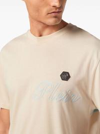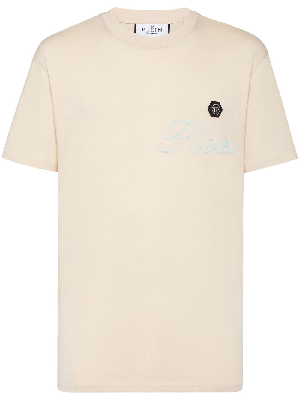 round-neck jersey T-shirt Highlights - Light beige - Embroidered logo at the chest - Short sleeves - Straight hem Imported Composition Cotton 100%