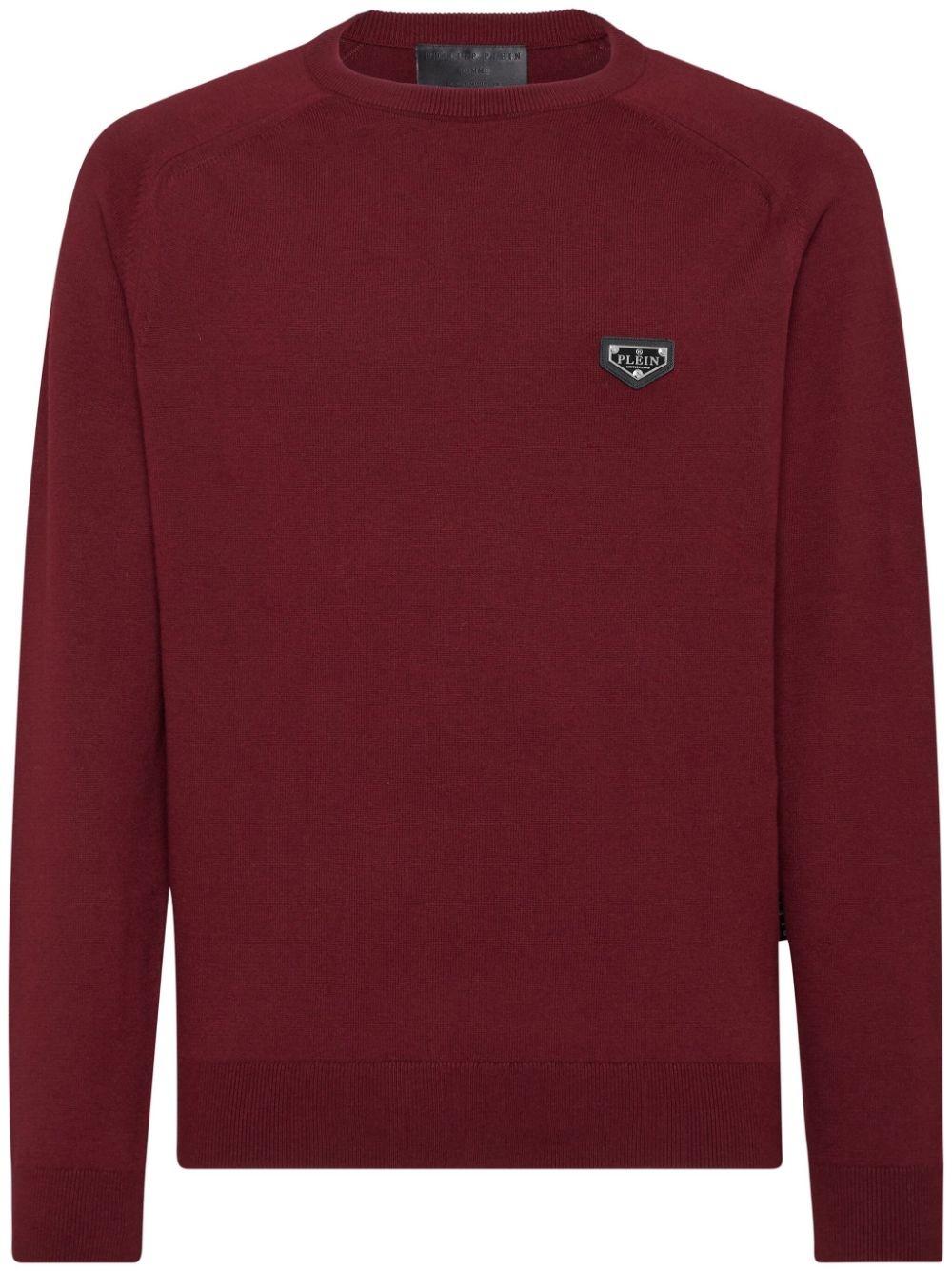 round-neck sweater Highlights - Blood red - Ribbed cuffs and hem - Logo plaque - Long raglan sleeves Imported Composition Cotton 100%