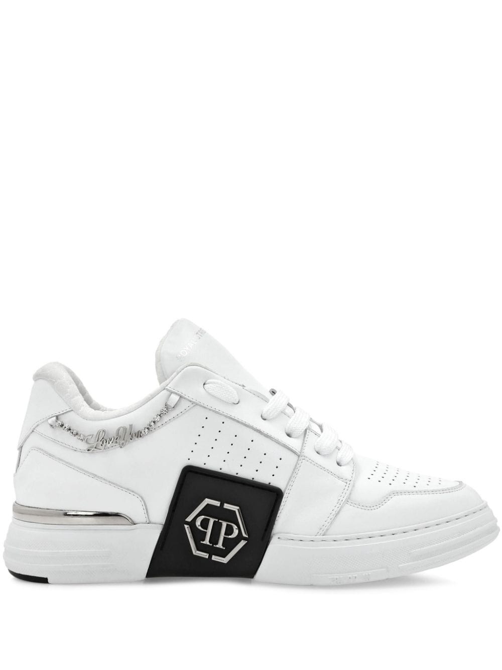 Royal Street leather sneakers Highlights - White/black - Calf leather - Panelled design - Silver-tone logo plaque - Chain-link detailing - Perforated detailing - Round toe - Front lace-up fastening - Branded insole - Flat rubber sole - When buying this unisex item, keep in mind that it is graded in standard men's sizing. Made in Italy Composition Leather 100%