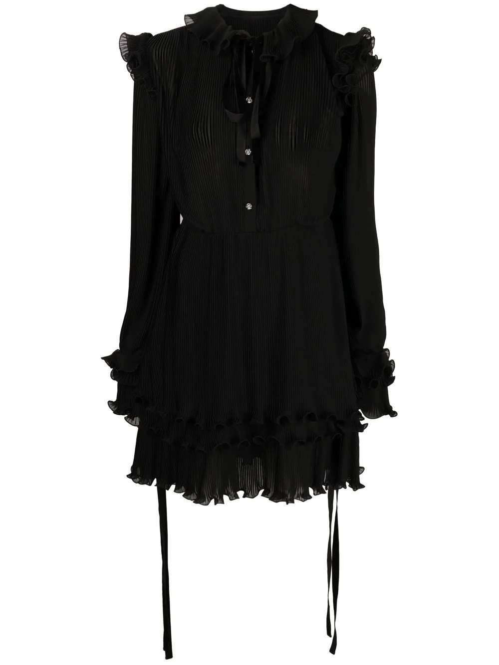 ruffled plisse midi dress Philipp Plein delves into a refined look in this classic black dress, adding decadence through the ruffled design and tie detailing. Made in Italy Composition Polyester 100% SIZE & FIT Model measurements Height 5 ft 10 in(1.78 m) Bust/Chest 32.28 in(82 cm) Hips 35.03 in(89 cm) Waist 23.22 in(59 cm) FittingInformation This piece fits true to size. We recommend you get your regular size Designed for a loose fit with a close fit at the waist Made with a mid-weight non-stretch fabric