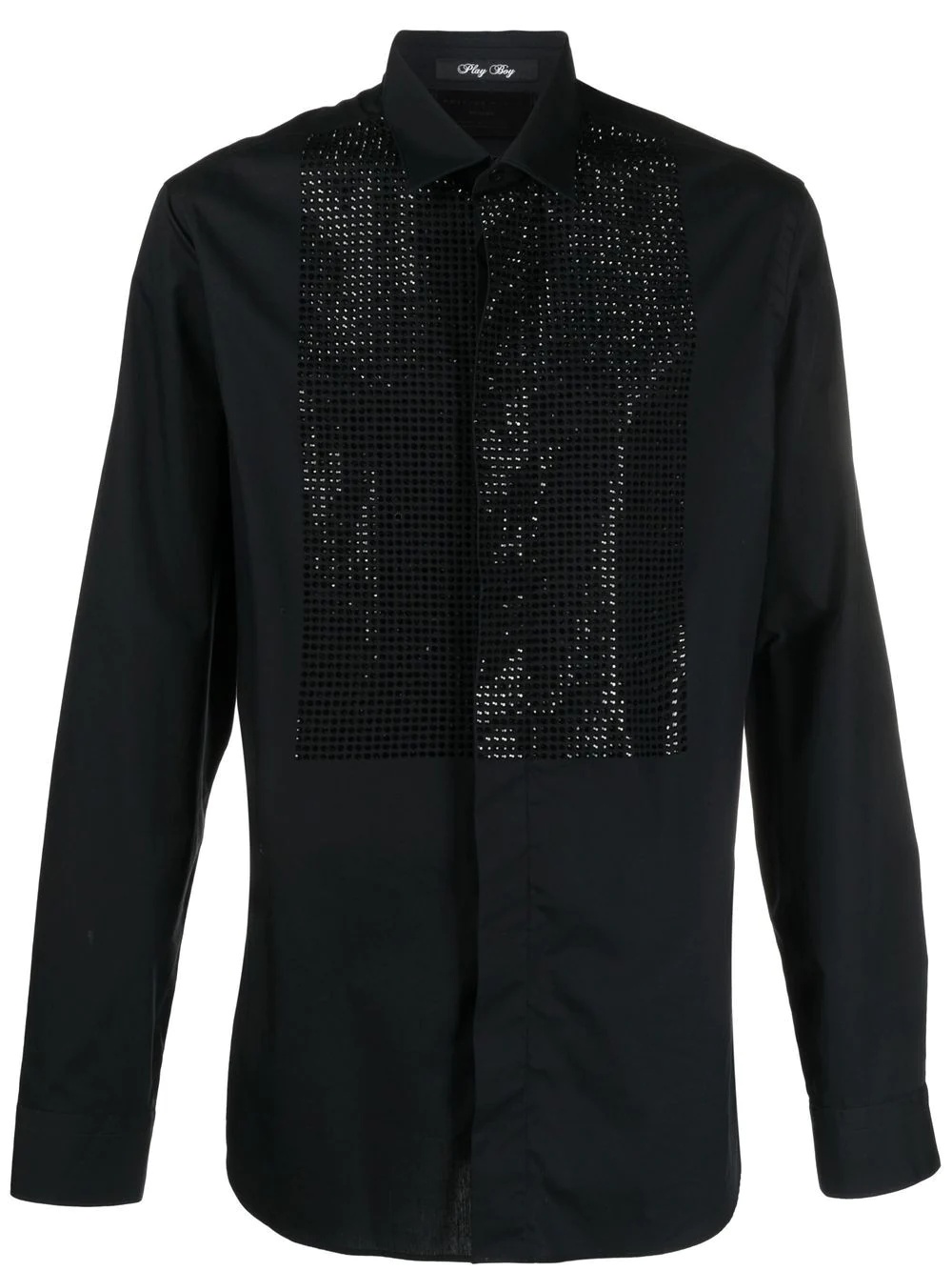 Sartorial stud-embellished shirt black cotton stud embellishment classic collar front button fastening long sleeves buttoned cuffs straight hem Made in Italy Composition Cotton 100% SIZE & FIT Model measurements Height 6 ft 2 in(1.88 m) Bust/Chest 36.61 in(93 cm) Hips 35.82 in(91 cm) Waist 27.95 in(71 cm) FittingInformation This piece fits true to size. We recommend you get your regular size Cut for a slim fit Made with a mid-weight non-stretch fabric Washing instructions Machine Wash