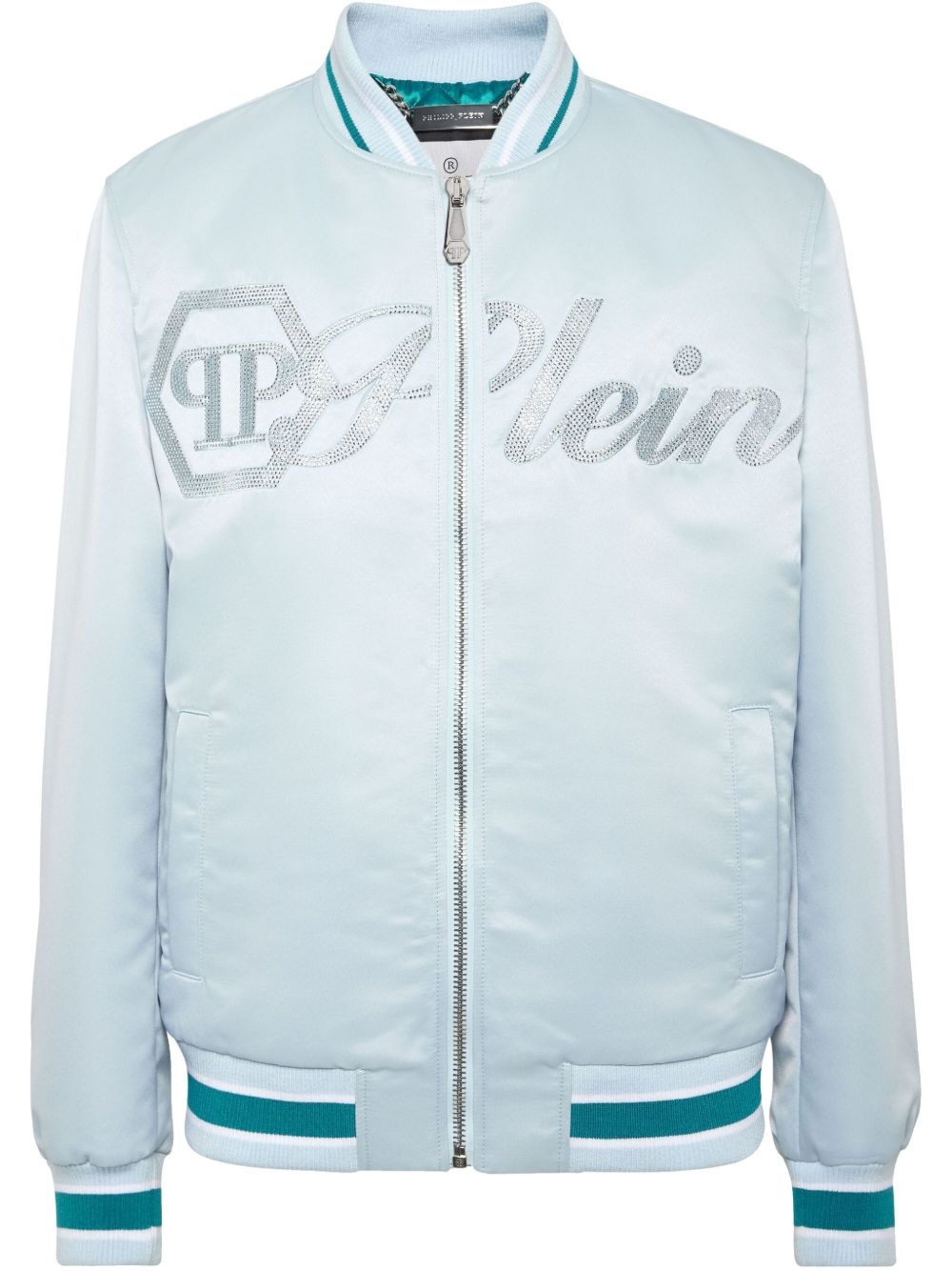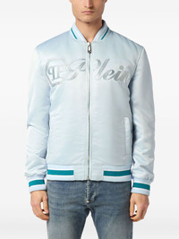 satin bomber jacket Highlights - Light blue - Front zip fastening - Logo embellishment - Ribbed collar - Ribbed cuffs - Ribbed hem - Contrast stripe detailing - Side pockets Imported Composition Fabric 100%