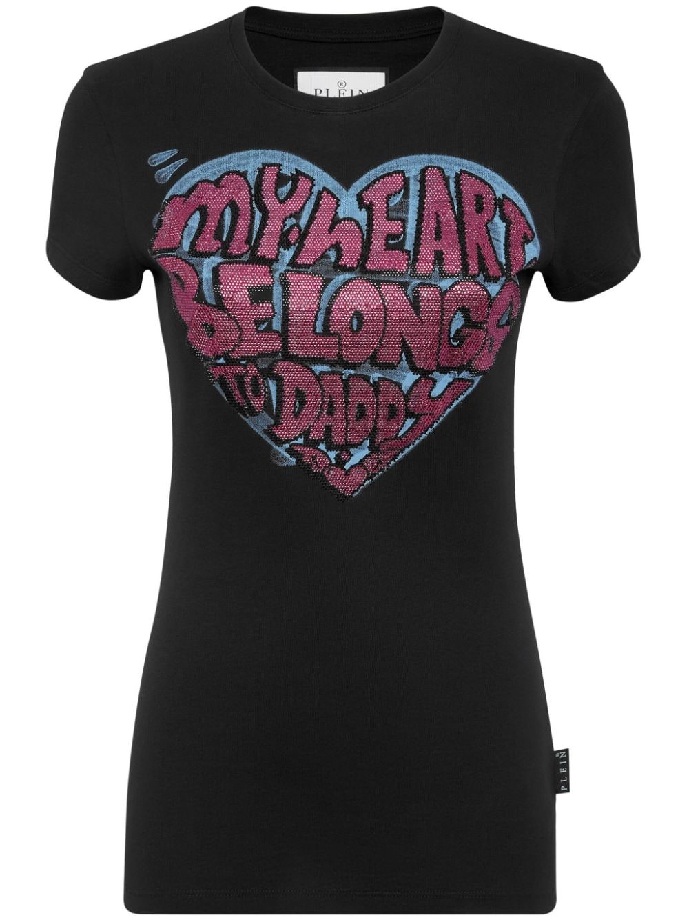 Sexy Pure cotton T-shirt Highlights - Black - Heart print - Rhinestone embellishment - Round neck - Short sleeves - Straight hem Imported Composition Cotton 100% Washing instructions Read Manufacturer Guidelines