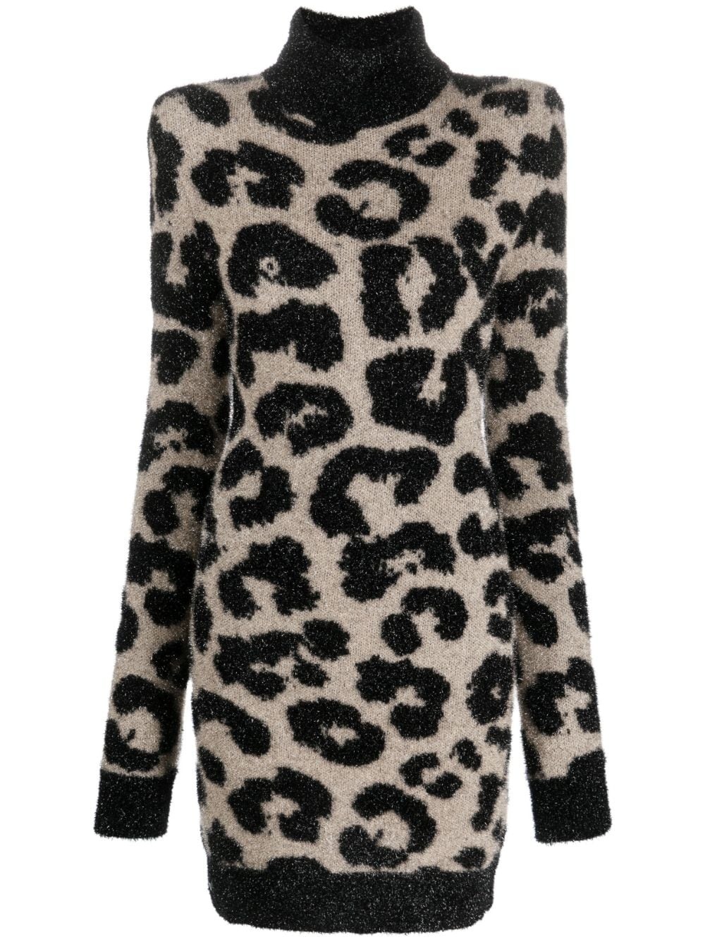 shoulder-pads leopard-print dress Highlights - Black/beige - Lurex detailing - Silver-tone logo plaque - All-over leopard print - Shoulder pads - Roll neck - Long sleeves - Straight hem - Thigh-length Made in Italy Composition Nylon 100% SIZE & FIT Model measurements Height 5 ft 11 in(1.8 m) Bust/Chest 31.88 in(81 cm) Hips 35.03 in(89 cm) Waist 24.01 in(61 cm) FittingInformation Designed for a close fit throughout The internal shoulder pads offer a structured shape Made with a lightweight knit, this piece offers some stretch Washing instructions Machine Wash
