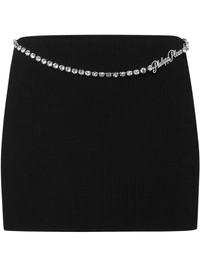 Signature mini skirt Highlights - Black - Belted waist - Crystal embellishment - Straight hem Made in Italy Composition Viscose 83%, Polyester 17%