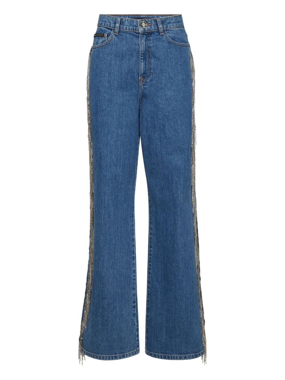 Skater Fit Crystal jeans Highlights - Blue - Crystal embellishment - Logo plaque - Front button fastening - Belt loops Imported Composition Fabric 100% Washing instructions Read Manufacturer Guidelines