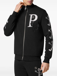 skeleton-print jersey tracksuit Highlights - Black/white - Cotton blend - Jersey texture - Sequin embellishment - Skeleton print - Top: - Stand-up collar - Long sleeves - Logo patch at the chest - Two side slit pockets - Ribbed cuffs and hem - Front zip fastening - Bottoms: - Tapered leg - Elasticated drawstring waistband - Logo patch to the front - Two side inset pockets - Elasticated cuffs Imported Composition glass 100%, Cotton 88%, Polyester 12% Washing instructions Machine Wash