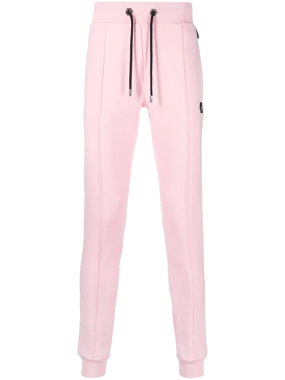 skinny-fit track pants with logo patch pink cotton skinny cut elasticated ankles elasticated waistband drawstring fastening waist logo patch to the side Imported Composition Cotton 100% SIZE & FIT Model measurements Height 6 ft 1 in(1.85 m) Bust/Chest 35.82 in(91 cm) Hips 37.79 in(96 cm) Waist 29.13 in(74 cm) FittingInformation This piece fits true to size. We recommend you get your regular size Cut for a slim fit Made with a mid-weight fabric Washing instructions Hand Wash