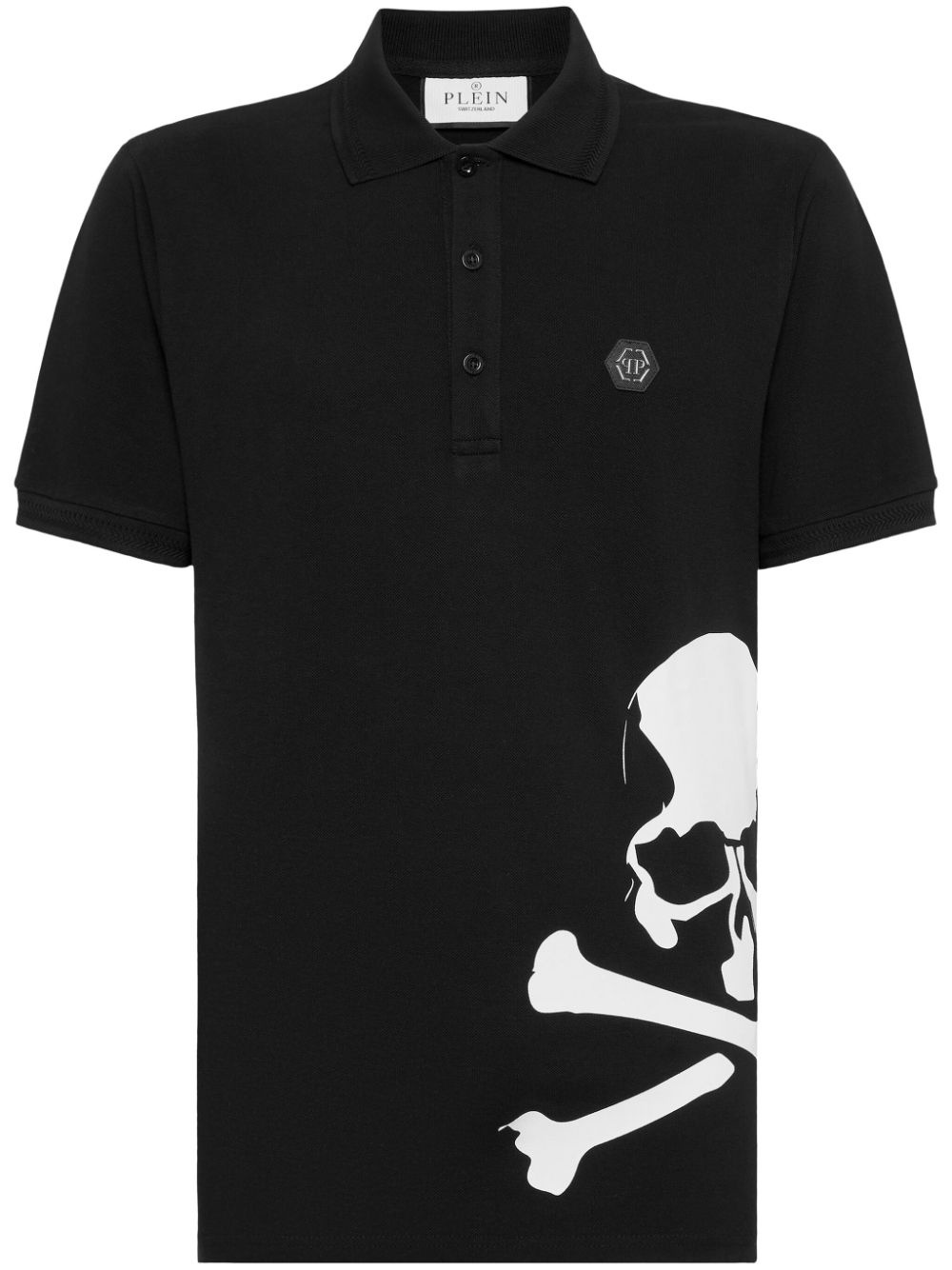 Skull & Bones cotton polo shirt Highlights - Black/white - Cotton - Pique weave - Skull print - Applique logo - Polo collar - Front button placket - Short sleeves - Straight hem Imported Composition Cotton 100%
