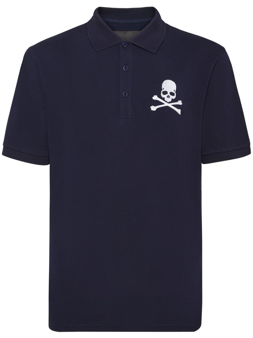 Skull & Bones embroidered cotton polo shirt Highlights - Navy blue - Cotton blend - Pique weave - Skull embroidery to the front - Logo patch to the rear - Polo collar - Front button placket - Short sleeves - Side slits - Straight hem Imported Composition Cotton 100%, Polyester 100%