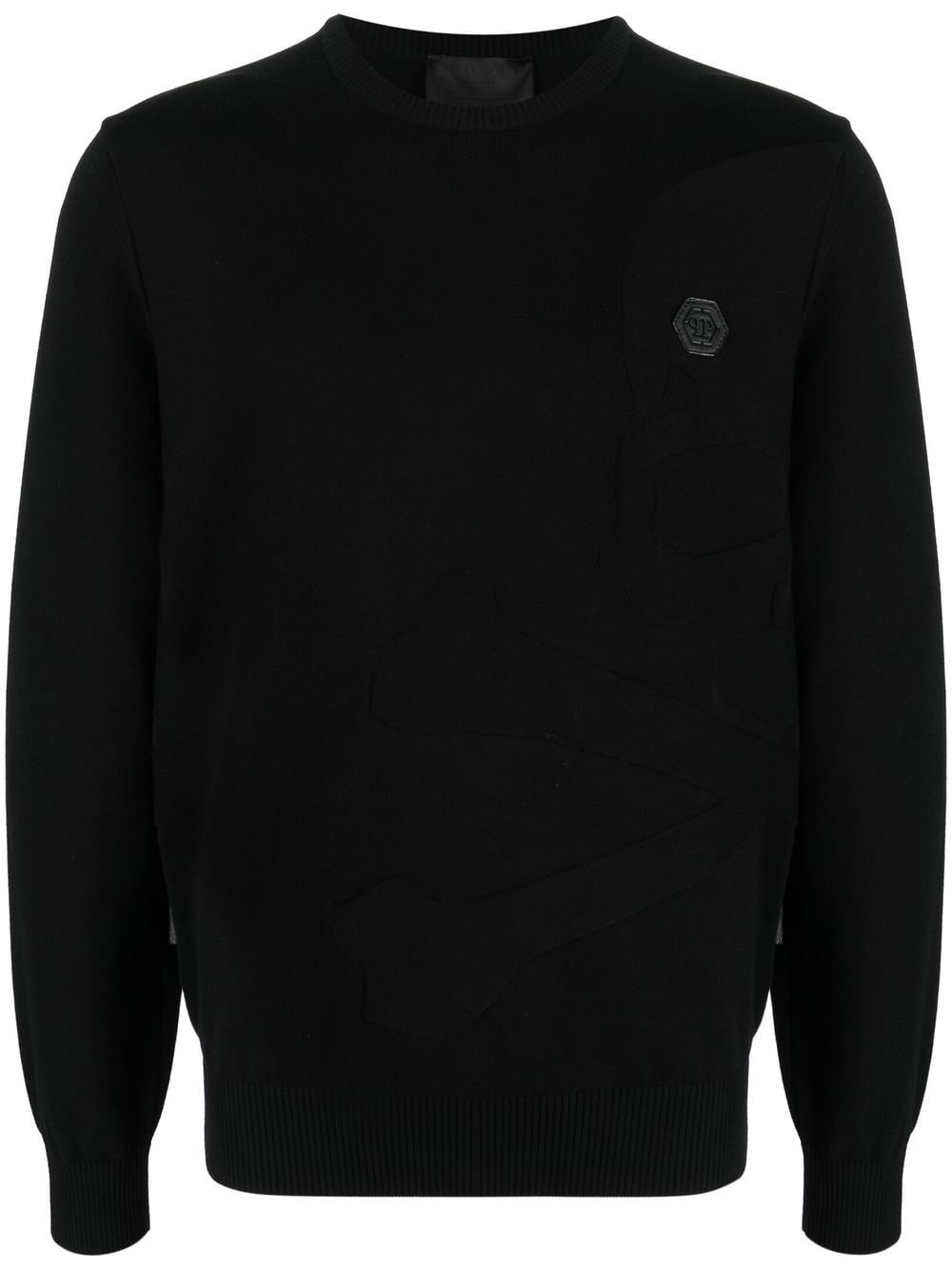 Skull Bones knitted jumper black cotton knitted construction intarsia knit ribbed-knit edge skull motif logo patch at the chest logo patch to the rear crew neck long sleeves straight hem Made in Italy Composition Cotton 100% SIZE & FIT Model measurements Height 6 ft 1 in(1.85 m) Bust/Chest 31.88 in(81 cm) Hips 33.07 in(84 cm) Waist 26.77 in(68 cm) FittingInformation Designed to be unstructured, offering a loose fit throughout Made with a midweight knit, this piece offers some stretch This piece fits true to size – take your usual size Washing instructions Dry Clean Only