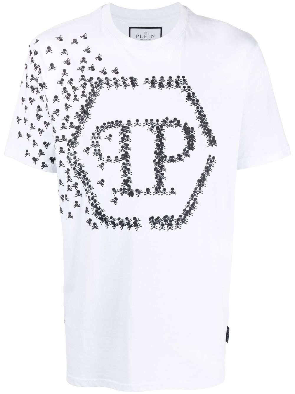 Skull Bones logo-print T-shirt white/black cotton jersey knit skull print to the front logo print to the front round neck short sleeves straight hem Imported Composition Cotton 100% SIZE & FIT Model measurements Height 6 ft 2 in(1.88 m) Bust/Chest 36.61 in(93 cm) Hips 37.79 in(96 cm) Waist 28.74 in(73 cm) FittingInformation Designed to be unstructured, offering a loose fit throughout Made from a lightweight non-stretch fabric, this piece offers minimal elasticity when worn This piece fits true to size – take your usual size Washing instructions Hand Wash