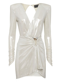 skull-detail draped mini dress Highlights - Silver-tone - Draped detailing - Long sleeves - V-neck - Cut-out detailing - Skull applique Made in Italy Composition Polyester 92%, Elastane 8% Washing instructions Read Manufacturer Guidelines