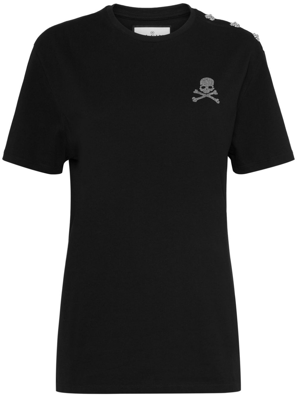 skull-embellished cotton T-shirt Highlights - Black - Cotton - Jersey texture - Crystal embellishment - Crew neck - Short sleeves - Straight hem Imported Composition Cotton 100%
