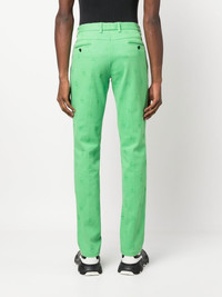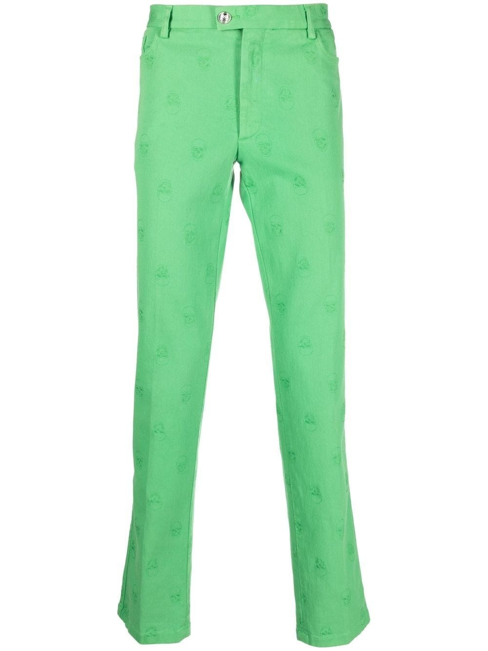 skull embroidery straight-leg trousers Philipp Plein adds a bold twist to the classic straight-leg jeans. This model is crafted from cotton, in vibrant green, and is decorated with skull embroideries all over, for a bold touch. Highlights - Green - Cotton blend - Embroidered motif - Mid-rise - Belt loops - Classic five pockets - Straight leg Made in Italy Composition Outer: Cotton 98%, Spandex/Elastane 2% Lining: Cotton 65%, Polyester 35% SIZE & FIT Model measurements Height 6 ft 2 in(1.88 m) Bust/Chest 36.61 in(93 cm) Hips 35.82 in(91 cm) Waist 27.95 in(71 cm) Washing instructions Dry Clean Only