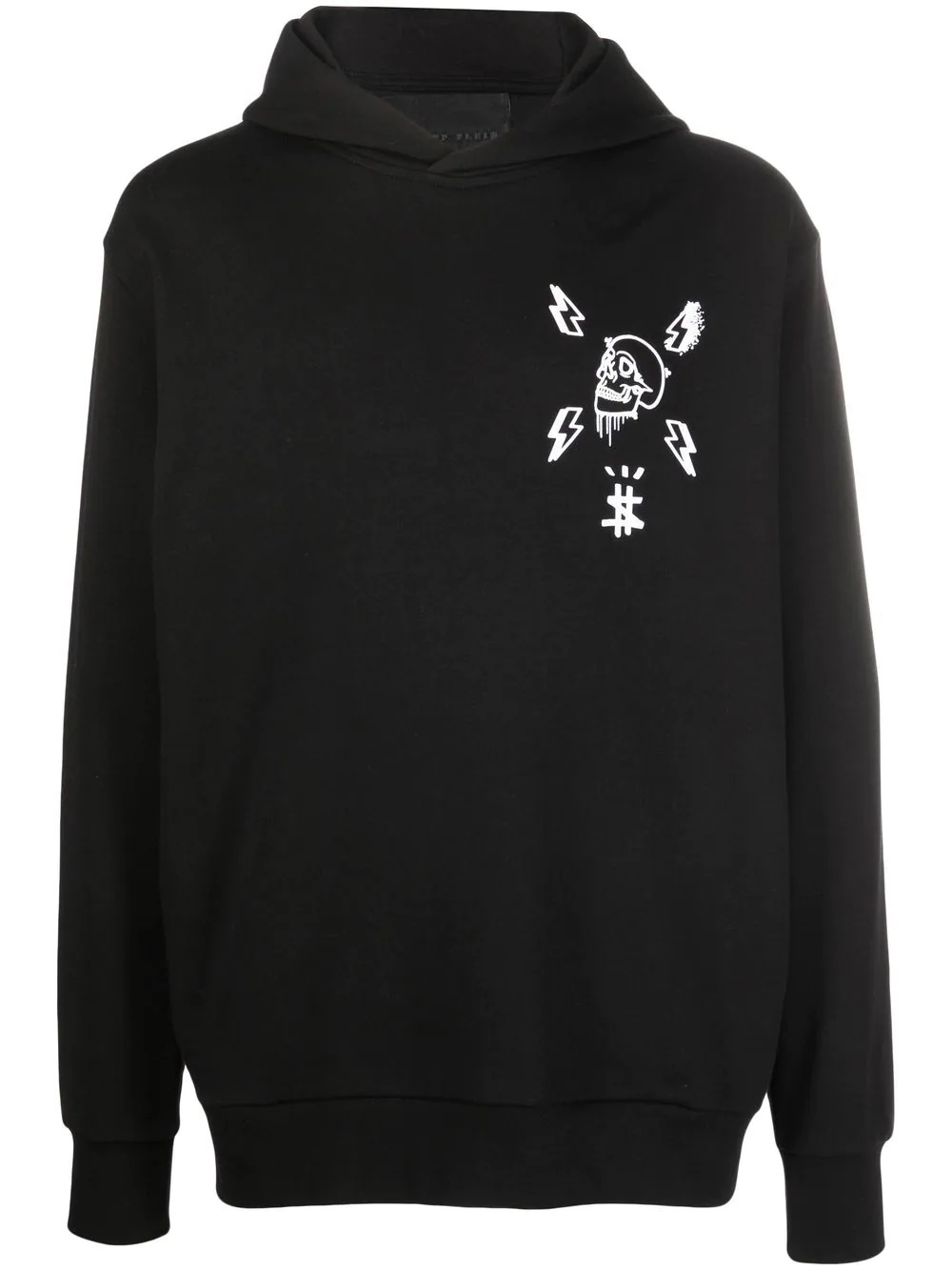 skull graphic-print hoodie black cotton graphic print at the chest skull print to the front classic hood long sleeves elasticated hem Imported Composition Cotton 100% SIZE & FIT Model measurements Height 6 ft 2 in(1.89 m) Bust/Chest 37.79 in(96 cm) Hips 37 in(94 cm) Waist 29.92 in(76 cm) FittingInformation This piece fits true to size. We recommend you get your regular size Cut for a loose fit Made with a mid-weight fabric Washing instructions Machine Wash