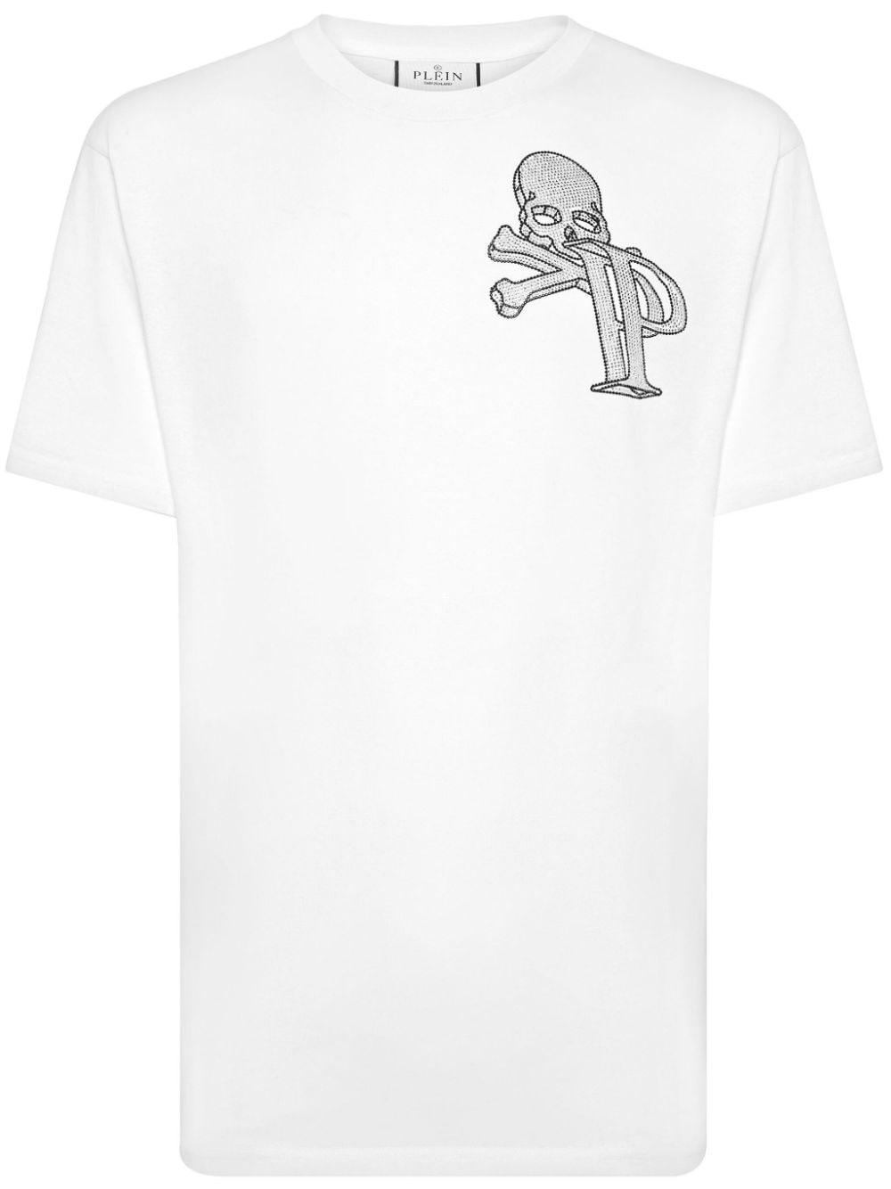 skull logo cotton T-shirt Highlights - White - Cotton - Crew neck - Short sleeves - Rhinestone embellishment - Logo print to the front - Applique logo - Logo print to the rear - Short sleeves - Skull and bones motif - Straight hem Imported Composition Cotton 100%