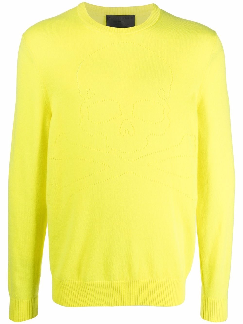 Skull pointelle-knit cashmere jumper yellow cashmere pointelle knit ribbed-knit edge crew neck long sleeves straight hem Made in Italy Composition Cashmere 100% SIZE & FIT Model measurements Height 6 ft 2 in(1.89 m) Bust/Chest 37.79 in(96 cm) Hips 37 in(94 cm) Waist 29.92 in(76 cm) FittingInformation This piece fits true to size. We recommend you get your regular size Cut for a relaxed fit Made with a mid-weight fabric Washing instructions Dry Clean Only