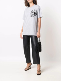 skull-print cotton-blend T-shirt grey cotton-blend skull print logo plaque crew neck short sleeves straight hem When buying this unisex item, keep in mind that it is graded in standard men's sizing. Made in Italy Composition Polyester 50%, Cotton 50% SIZE & FIT Model measurements Height 5 ft 9 in(1.76 m) Bust/Chest 33.07 in(84 cm) Hips 34.64 in(88 cm) Waist 25.59 in(65 cm) FittingInformation This piece is unisex. Please take care when selecting your size Designed for a loose fit for men and an oversized fit for women Made with a mid-weight fabric Washing instructions Machine Wash