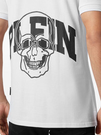 Skull-print cotton polo shirt Highlights - White/black - Cotton - Logo patch at the chest - Skull print to the rear - Polo collar - Front button placket - Short sleeves - Short side slits - Straight hem Imported Composition Cotton 100%