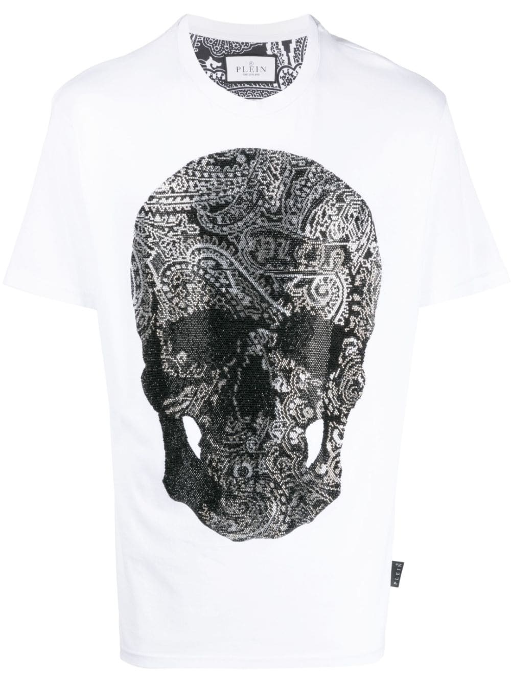 skull-print cotton T-shirt Highlights - White/black - Cotton - Logo patch to the side - Skull print - Round neck - Short sleeves - Straight hem Imported Composition Cotton 100% SIZE & FIT Model measurements Height 6 ft 1 in(1.85 m) Bust/Chest 35.82 in(91 cm) Hips 37.79 in(96 cm) Waist 29.13 in(74 cm) FittingInformation Designed for a relaxed fit, this piece allows for comfort and movement when worn Made from a midweight non-stretch fabric, this piece offers minimal elasticity when worn This piece fits true to size – take your usual size Washing instructions Hand Wash