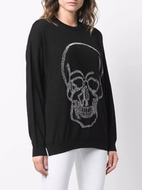 skull-print jumper black wool ribbed detailing skull print round neck long sleeves straight hem Imported Composition Wool 90%, Polyester 10% SIZE & FIT Model measurements Height 5 ft 9 in(1.75 m) Bust/Chest 32.67 in(83 cm) Hips 36.22 in(92 cm) Waist 24.8 in(63 cm) FittingInformation This piece fits true to size. We recommend you get your regular size Cut for a loose fit Made with a mid-weight fabric Washing instructions Hand Wash