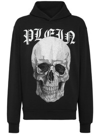 skull-print rhinestone-embellished hoodie Highlights - Black - Cotton blend - Jersey texture - Rhinestone embellishment - Skull print - Classic hood - Long sleeves - Fitted-cuff sleeves - Straight hem Imported Composition Cotton 88%, Polyester 12%