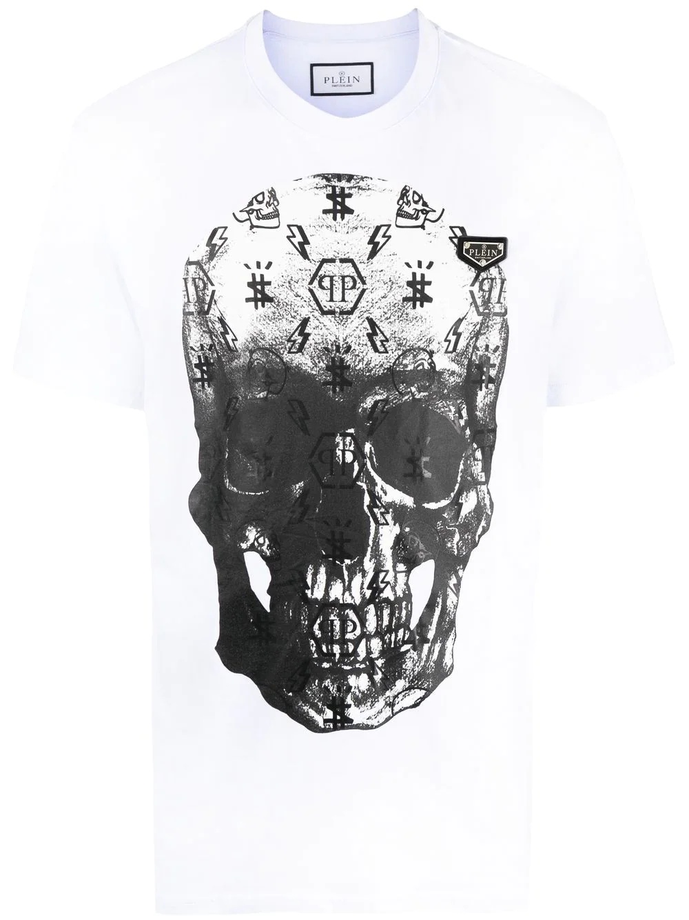 skull-print short-sleeve T-shirt Highlights - White - Black - Cotton - Jersey knit - Skull print to the front - Logo print to the front - Round neck - Short sleeves - Straight hem - When buying this unisex item, keep in mind that it is graded in standard men's sizing. Imported Composition Cotton 100% SIZE & FIT Model measurements Height 5 ft 11 in(1.8 m) Bust/Chest 33.07 in(84 cm) Hips 37.4 in(95 cm) Waist 25.19 in(64 cm) FittingInformation This piece is unisex. Please take care when selecting your size Cut for a relaxed fit for both men and women Made with a mid-weight fabric Washing instructions Machine Wash