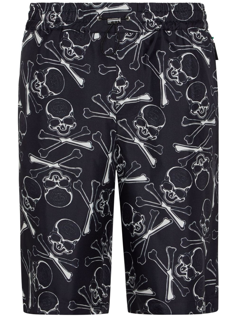 skull-print silk shorts Highlights - Black/white - Silk - Skull print - Elasticated drawstring waistband - Two side inset pockets - Rear flap pocket - Straight leg - Knee-length Made in Italy Composition Silk 100%