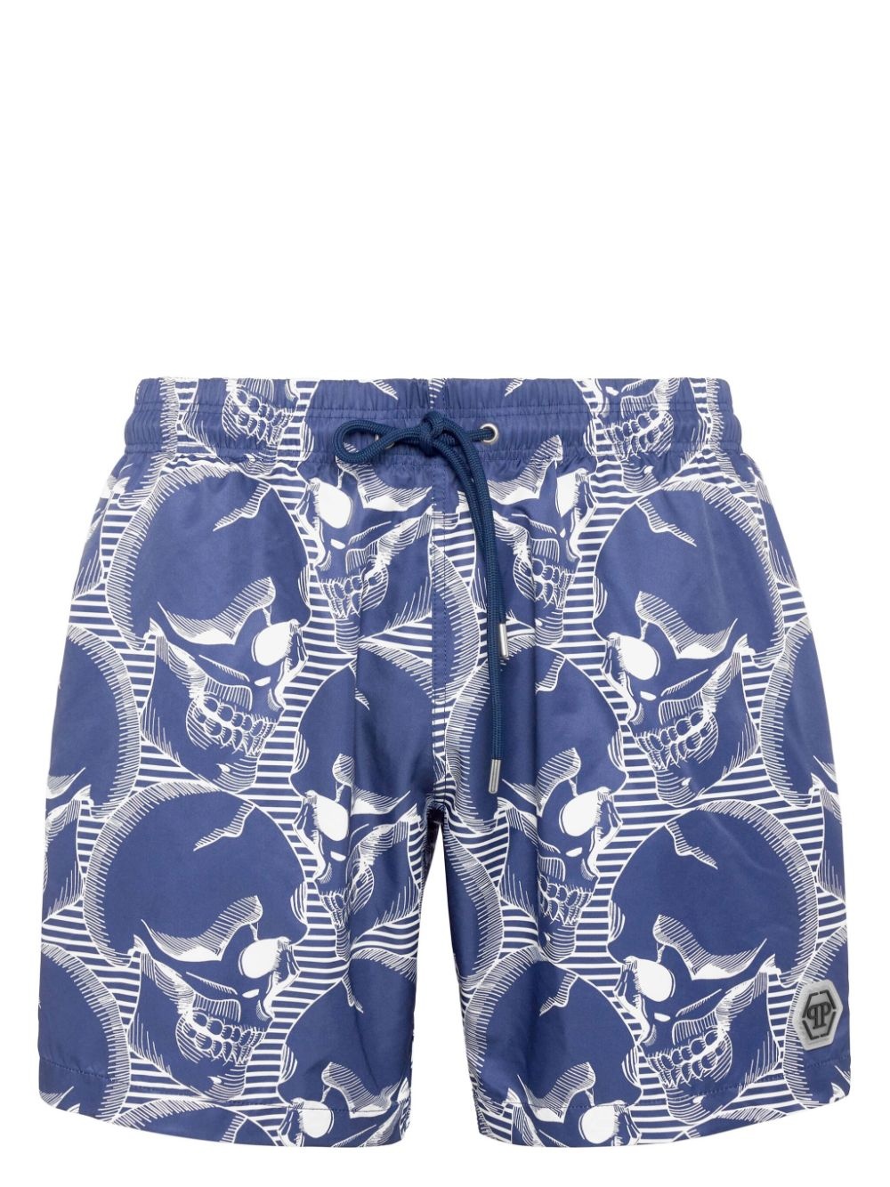 skull-print swim shorts Highlights - Blue - Skull print - Slip pockets to the sides - Elasticated waistband - Drawstring fastening - Be mindful to try on swimwear over your own garments. Imported Composition Polyester 100%