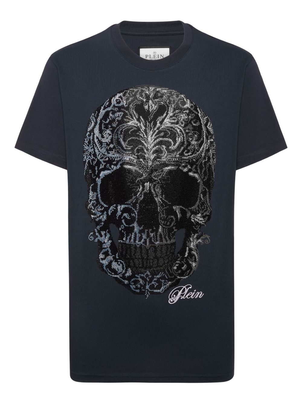 skull-print T-shirt Highlights - Navy blue - Embellished skull design - Logo detailing - Short sleeves Imported Composition Cotton 100%, glass 100%, Polyester 100%
