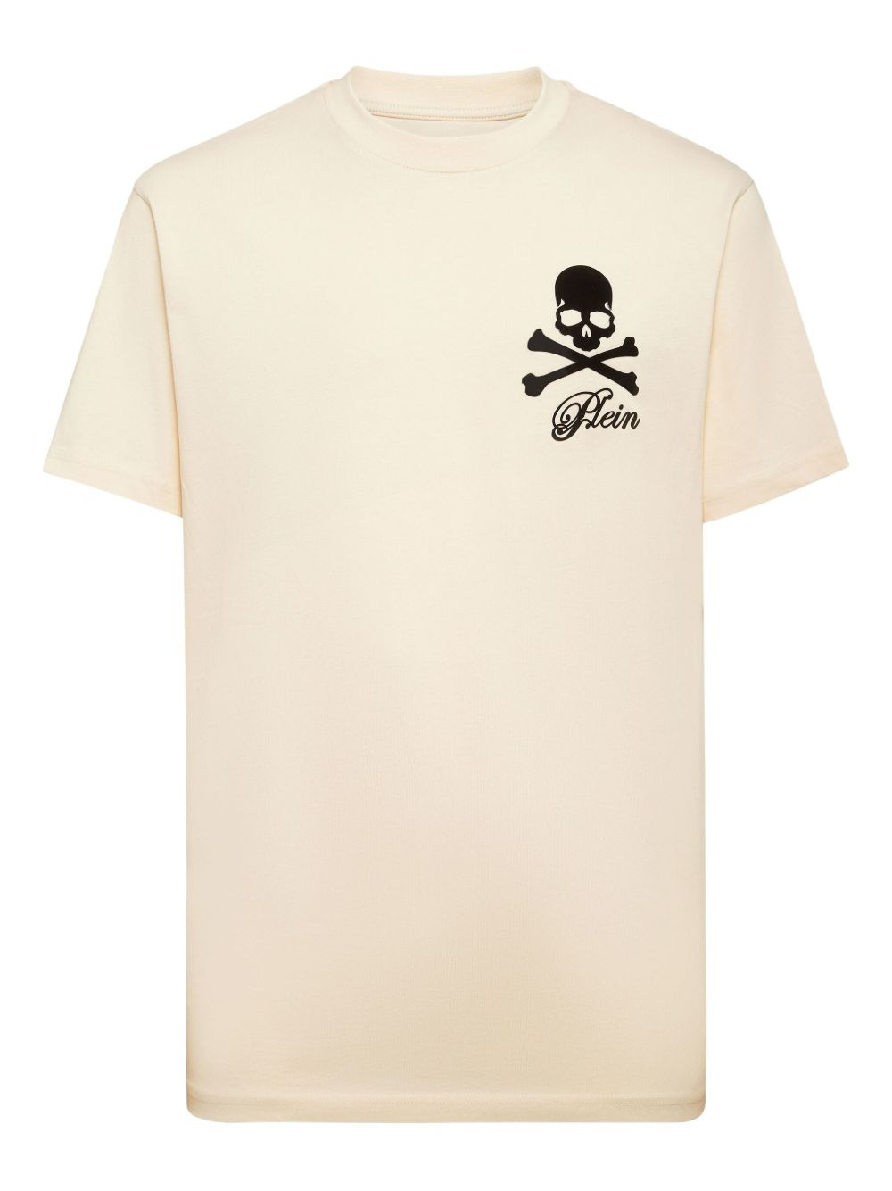 skull-print T-shirt Highlights - Cream - Front skull and crossbones print - Logo lettering - Short sleeves - Crew neckline - Back logo detail Imported Composition Cotton 100% Washing instructions Read Manufacturer Guidelines