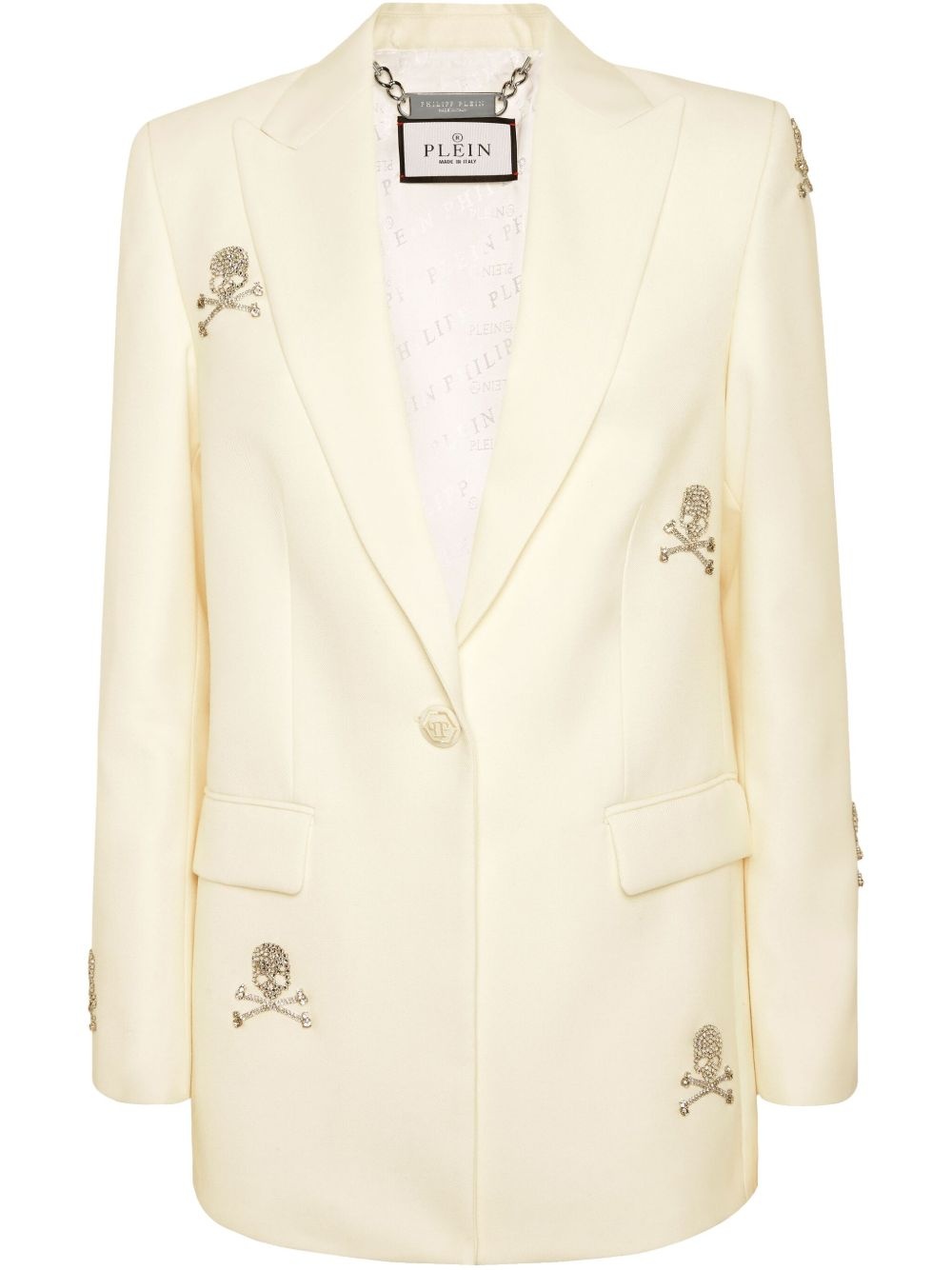 Skull Strass blazer Highlights - White - Rhinestone embellishment - Front button fastening - Long sleeves - Buttoned cuffs Made in Italy Composition Outer: glass 100%, Polyester 55%, Wool 45% Lining: Acetate 52%, Viscose 48%
