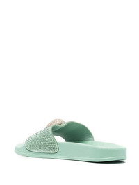 Skull strass pool slides mint green/gold-tone rhinestone embellishment skull applique open toe slip-on style branded insole flat rubber sole Made in Italy Composition Lining: Rubber 100% Outer: Acrylic 100% Sole: Rubber 100% SIZE & FIT Measurement HEEL 0.59 in(1.5 cm) Sole height 0.39 in(1 cm)