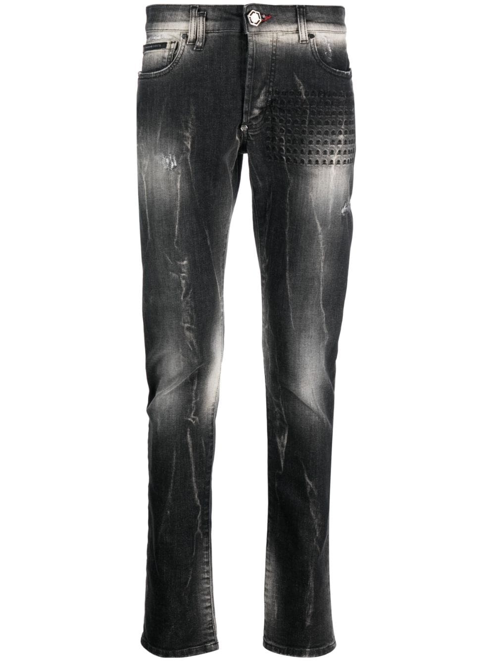Skull&Bones-embroidered faded jeans