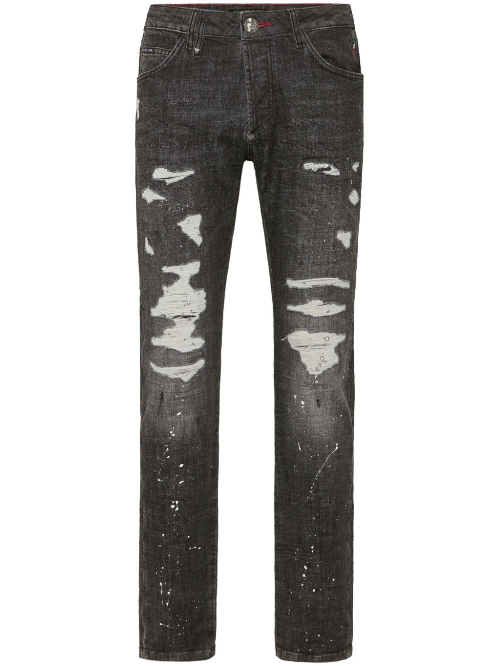 Skull&Bones jeans Highlights - Dark grey - Stretch-cotton - Denim - Concealed fly and button fastening - Belt loops - Classic five pockets - Ripped detailing - Paint splatter detail - Logo patch to the rear - Skull embroidery to the rear - Slim cut Imported Composition Lining: Polyester 65%, Cotton 35% Outer: Polyester 100%, Cotton 98%, Elastane 2% Washing instructions Read Manufacturer Guidelines