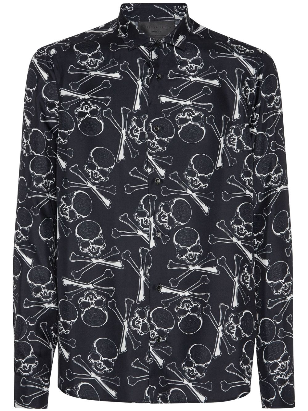 Skull&Bones silk shirt Highlights - Black/white - Silk - Skull print - Classic collar - Long sleeves - Front button fastening - Buttoned cuffs - Straight hem Made in Italy Composition Silk 100%